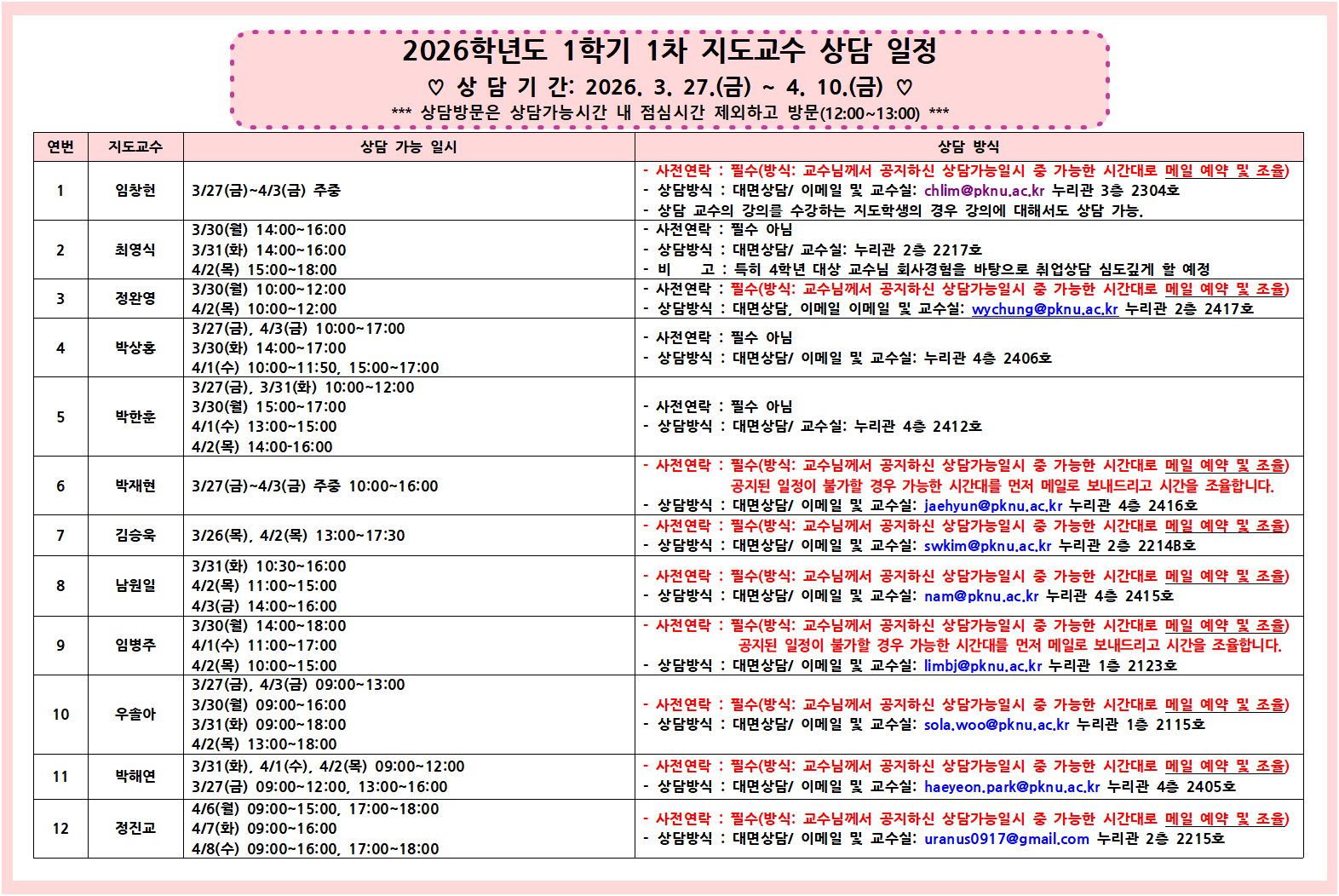 2026-1학기 1차 지도교수 상담 일정 및 지도교수 배정 안내